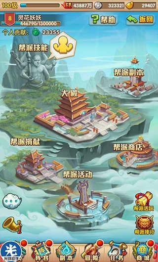 其他优化:大闹天宫扩展,通关奖励更加丰富;部分商店挑战;新增帮派红包、镇守花果山挑战、双休垂钓挑战、幻金仙灵一键灵修、神将画卷新增等等