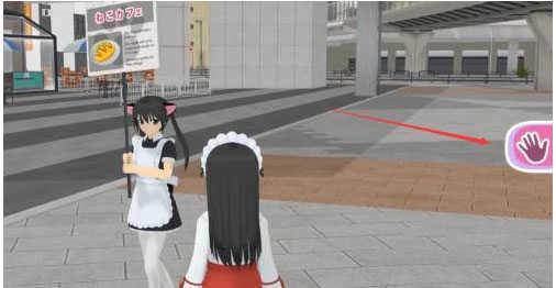 1、进入游戏后前往家门的位置,靠近之后在游戏界面的右侧会出现一个小手的标志,点击即可进行互动;