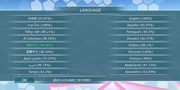 首先进入游戏,点击左下角的“SETTINGS”→再点击“Language”,在此选择“简体中文”即可,如图: