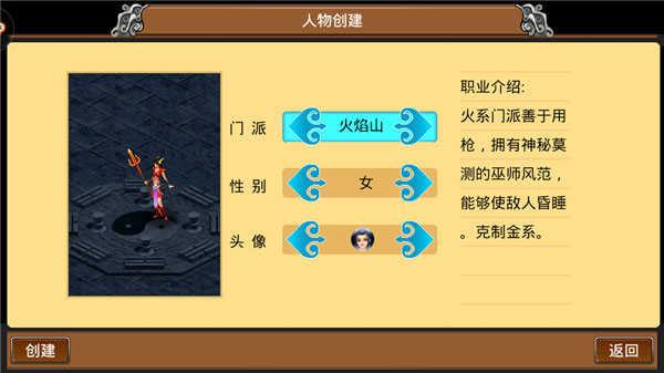 阐教阵营的金系门派.门下弟子善于用枪,能够封印敌人法术.该职业,法功高,防一般;鬼王寨,西方教派阵营的木系门派.门下弟子善于用爪,能够对敌人下毒.这职业还没玩过;水晶宫,西方教派阵营的水系门派.门下弟子善于用剑,能够使敌人混乱.该职业属于奶妈;火焰山:西方教派阵营的火系门派.门下弟子善于用枪,能够使敌人昏睡.该职业,出手速度最快;黑风洞:截教阵营的土系门派.门下弟子善于用刀,能够使敌人石化。