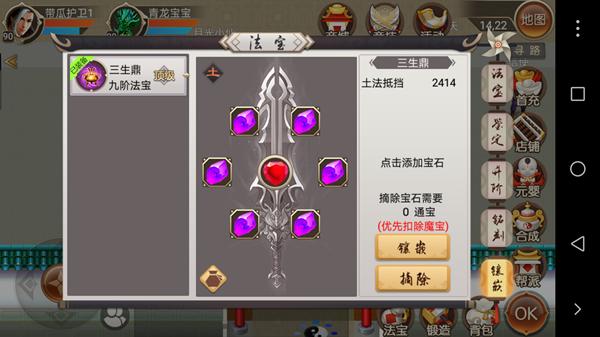 法宝除去通过鉴定获得的基本成长属性之外,还可以镶嵌额外7条宝石属性