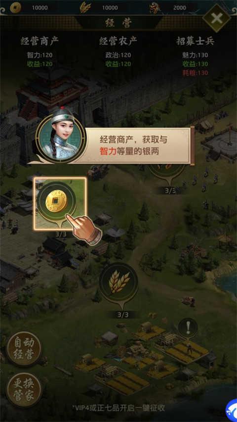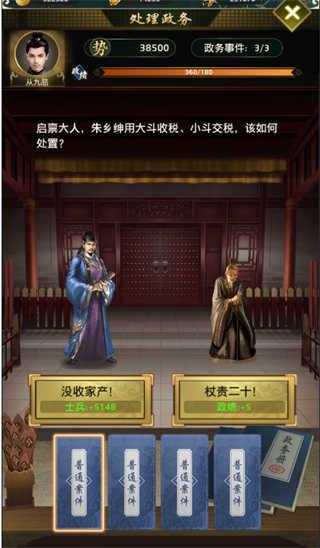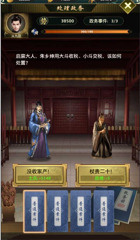 2、政务处理,以在府中点击师爷进行政务处理获得相应的奖励;