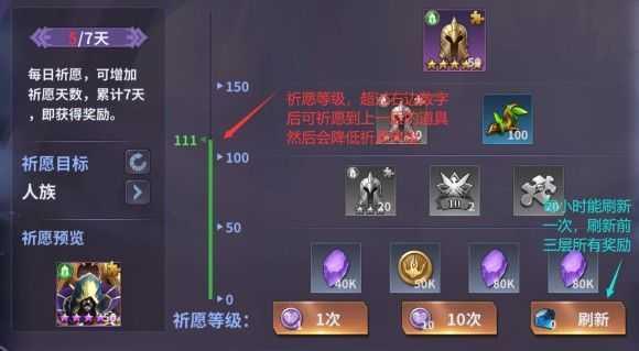 5、先知树枝可以转换英雄并有概率置换出SS和SSS英雄,建议玩家不要有少量的树枝的就马上置换,置换的概率有些感人,最好存到一定数量后再进行置换,炼狱塔是获得树枝的主要途径,建议每次都参加,不但可以混树枝,还能混大量钻石。