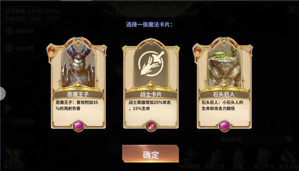 可选择获得一张魔法卡片,魔法卡片可以在本次秘境探险内永久加强自身的英雄,可根据所持有的英雄与英雄种族、类型来选择合适的魔法卡片提升在秘境中的战斗力,选好魔法卡片能大大提升通关的概率。