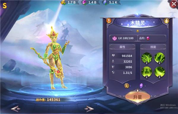 木精灵,自然族S英雄。释放怒气技能时,所有队友得到祝福,增加25%/35%/50%攻击力,15%/21%/30%攻击速度,持续10秒。对友方,减防,护盾保护队友。对敌方,技能控制。是个攻守兼备的辅助英雄。
