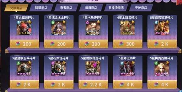 建议兑换:售价为100勇士积分的5星英雄碎片