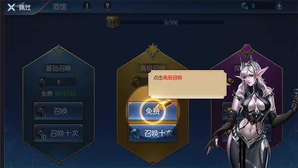 获得召唤券以后呢,我们来到【酒馆】,点击‘高级召唤’即可免费召唤英雄了~