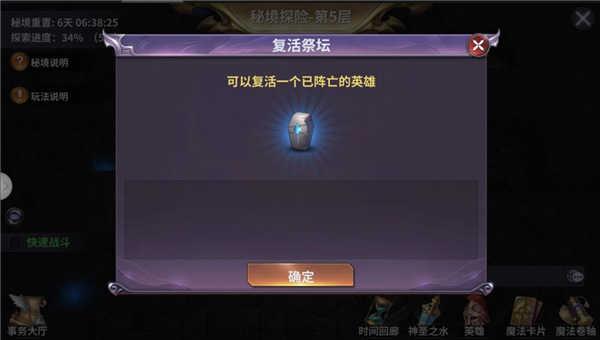 大致与雪域探险相同,但更新时间为7天1次,且会有各种不同的秘境,分别为只能上1个秘境,开局满怒秘境,分身秘境,白送4个sss秘境。