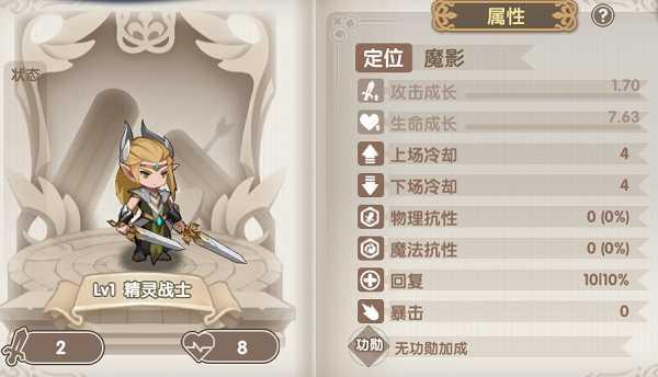 精灵追随者具有很强的范围技能,每回合都能对我方全体英雄造成伤害,追随者的攻击成长和生命成长一般,可以使用单体伤害较高的英雄应对,避免出现精灵追随者在后置位无法击杀的情况。