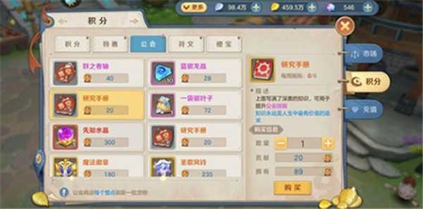 公会贡献兑换优先度排序:研究手册>红色符文>妖之卷轴