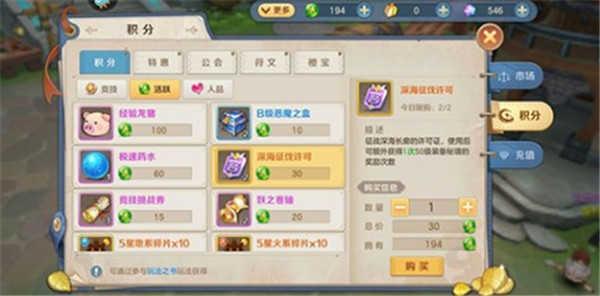 活跃积分兑换优先度排序:深海征伐许可证>恶魔之盒>妖之卷轴>竞技挑战卷,如有多余建议兑换两张转职卷丢进仓库。