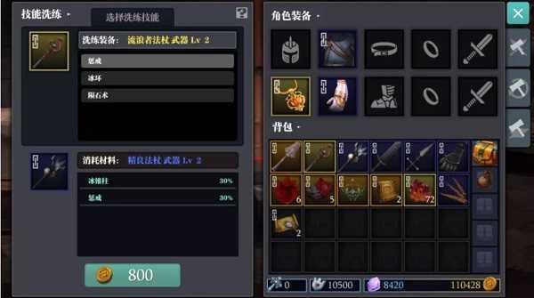 1、仅有武器类装备才能进行技能洗练,且必须使用相同种类的武器作为传承材料;