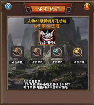 装备宝石镶嵌:单个装备宝石镶嵌:最低4颗4级、8级、12级、16级、18级、20级,能分别激活装备基础主属性的百分比