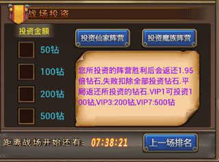 战场押注猜对后比例是1:1.95(如押注200猜对后:200*0.95+200=390)
