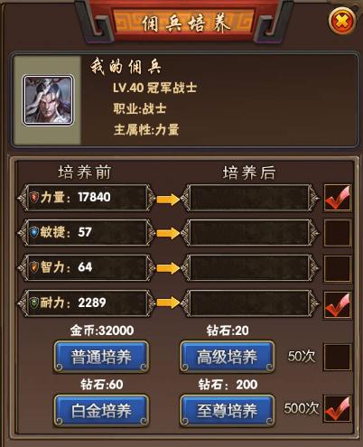 每天前三次免费培养次数(建议:钻石培养)前期主要培养星级属性,暂时不用培养装备属性。到最高级装备再培养装备属性。