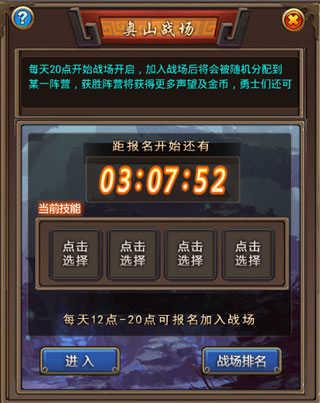 报名之前可设置战场技能,战场技能设置只能用于战场