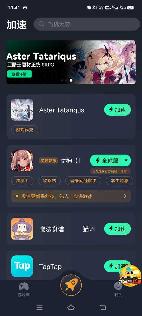 1、在本站下载Aster Tatariqus官方版,游戏需加速器启动,打开奇游手游加速器,找到该游戏,然后点击右侧加速;