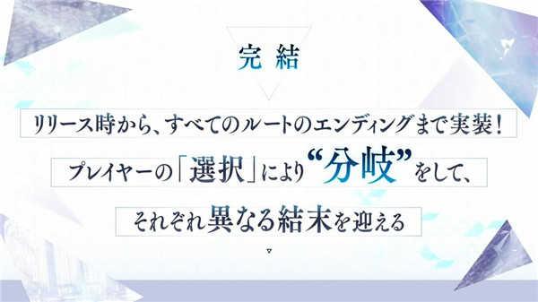 游戏中以“分歧”、“剧情”、“完结”三个为核心。剧情根据玩家的选择大致会分歧出三种路线,并且会产生八种结局。