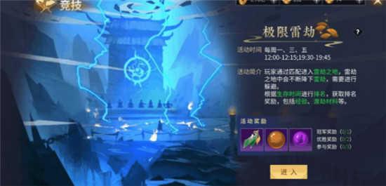 1、雷劫之地是玩家角色达到115级后开放的一个特色多人副本,逢每周一、三、五的12:00-12:15和19:30-19:45,玩家可以通过匹配进入雷劫之地,雷劫之地中会不断降下雷劫,需要进行躲避。