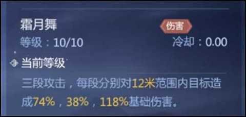 普攻【霜月舞】:在2/3/4技能点满之后再升级。