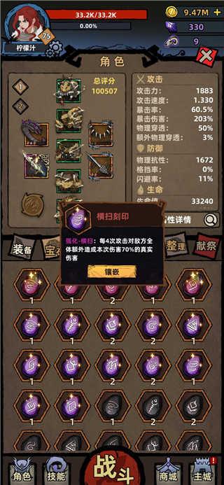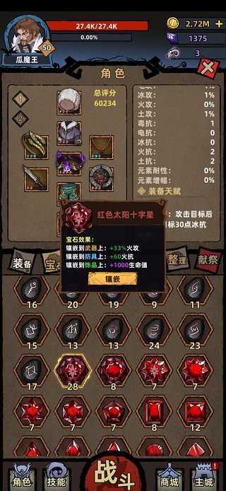 第一条原则:一切以快速推图为目标,尽快能打下一关的图,更新下一级别的装备,角色升级也要尽量快。所以+经验增幅、+幸运等的属性,尽量要多搞些。宝石也多搞些加经验增幅、幸运的打到饰品上。