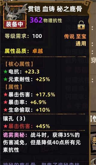 获得35%的伤害减免,虽然减少40的元素抗性,但是我认为影响不大。