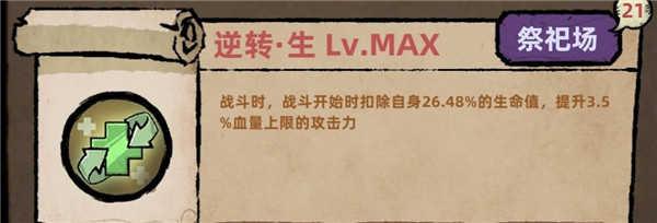技能解析: 开局第一波扣除生命,提升3.5%最大生命值的攻击力。虽然开局掉一点血,这都不是问题,主要是能加攻击力,物理流的不二之选。