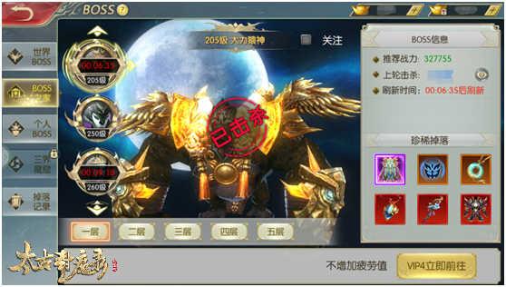 BOSS总共有4类:世界BOSS/BOSS之家/个人BOSS/三界魔窟