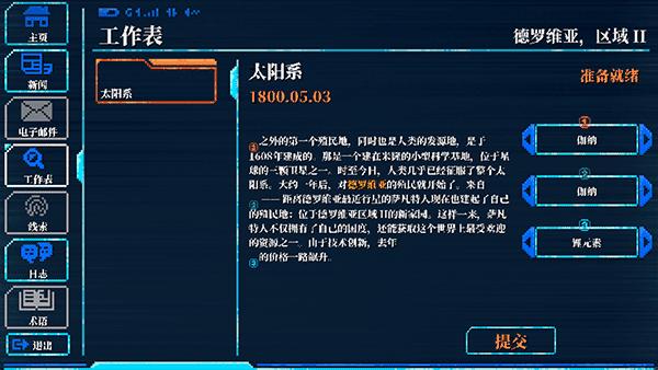 4、调查墙上的天体图,然后打开手机,先查看【新闻】,再打开【工作表】,根据天体图和新闻的线索,提交【①伽纳、②新乔安、③钛南元素】。