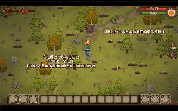 每次前进以及遭遇某些事件时会消耗体力,当体力为0时会发生一些负面事件,所以记得喂饱自己吧。