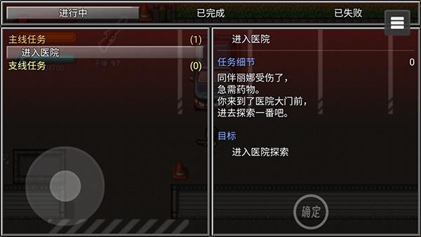 3、在这里可以看到一个新任务, 击杀丧尸并进入医院可点击右侧任务按钮查看详情。