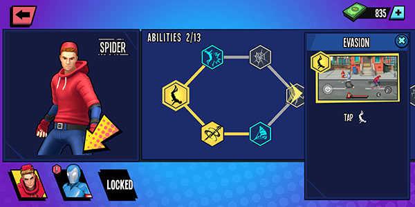 4、用你快速飞行的蜘蛛攻击行动不可预测,击败对手并获得下一个超级英雄级别的经验。
