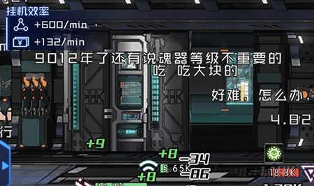 和推进高难度关卡以及挑战BOSS不一样,游戏里阵容的的搭配和挂机时所获取的资源多少无关,挂机所获得的的资源都是固定的。你的队伍处在什么难度的关卡,左上角就会有神秘效率的挂机收益。比如说三倍速的小号现在位于困难的3-5,挂机效率就是600科技点每分钟,132图灵新钞每分钟。有的小伙伴曾经问过,带全输出阵容的魂姬,挂机会不会收益高一点,实际上挂机效率只受当前关卡难度影响,不要想着考别的因素啦。