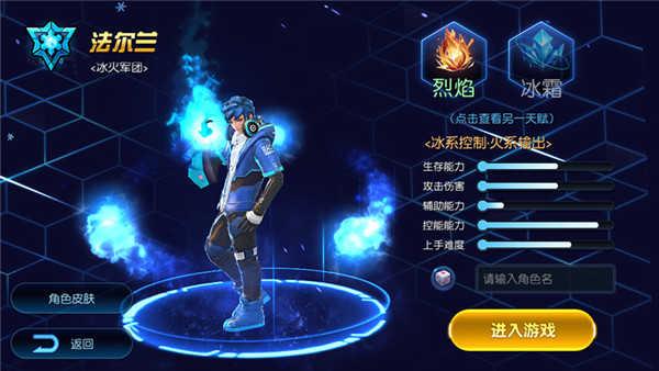 法尔兰拥有武器——可以增幅能量控制的手臂,既可以利用冰元素将敌人冻结,也可以利用火元素让敌人陷入熊熊火焰中。在战斗中,他的冰霜和烈焰天赋可随意切换。当他使用冰霜天赋时,普通攻击时有一定概率为自身附加一层寒冰指状态,如果达到两层寒冰指状态,所有技能就都会带有冰冻效果。而他的烈焰天赋对于陷入灼烧状态的敌人,释放技能时会产生额外效果。