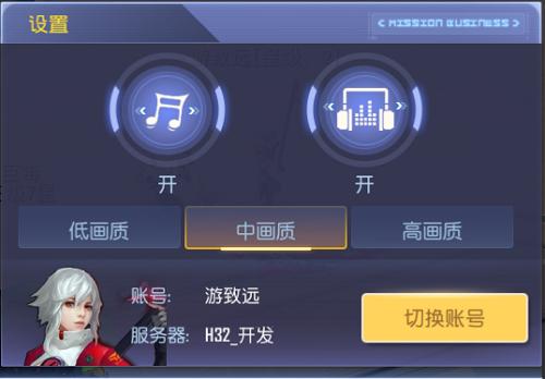 设置界面:可对游戏的音乐,音效进行开关,并选择游戏的画质。