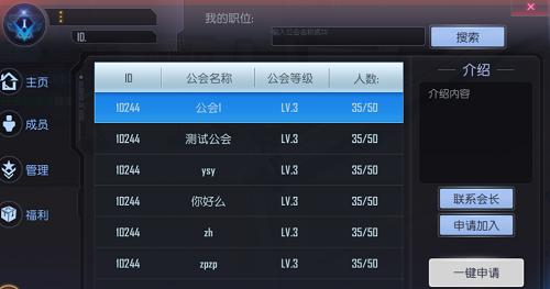 玩家达到20级时,也可以选择加入其它公会,点击公会按钮打开公会列表,可以点击一键申请系统自动帮忙申请可以加入公会,也可以自己选择公会进行申请。