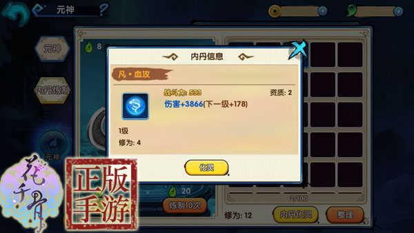 内丹化灵可以将没有用的内丹炼化为修为值,用于内丹的升级。