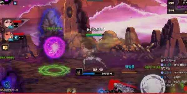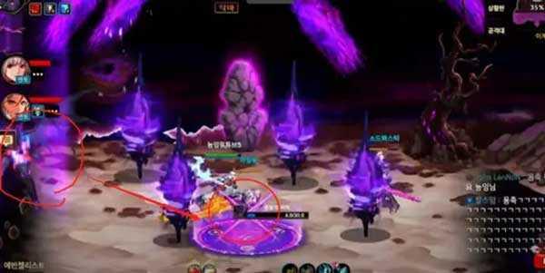 三、Boss在屏幕中间召唤大球,大球下方有个黑色圆圈,同时屏幕两侧会有黄色小球。三个玩家(至少两人)使用角色多次多次往返碰触黄色小球并反复站进屏幕中央的黑色圆圈,读条结束前没有收集到足够黄球,大球落下,全屏秒。