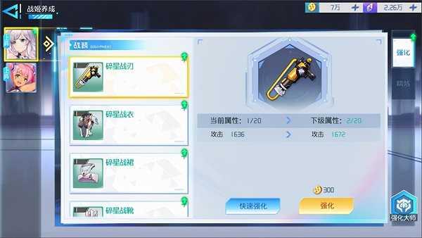 装备培养:通过消耗各种材料对装备进行强化,使其获得属性上的提升。