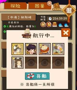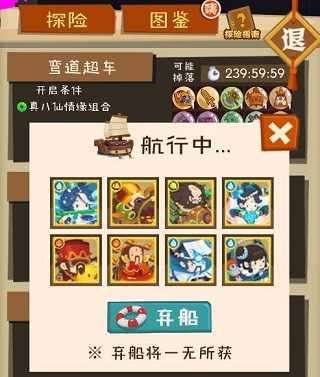 根据探险指南,需要献祭素材来增加开船探险的时间,时间必须大于1小时。