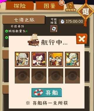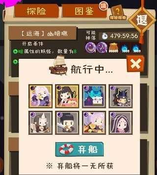当你有妖怪闲置在仓库的时候,就可以考虑来开船得到想要的金币、魂、素材。当然,开船都需要条件,只有当触发到了这个条件,才可以发动这艘船能得到的特定的东西。(简单来说就是:用不需要的素材和饭来换需要的素材或者金币。)