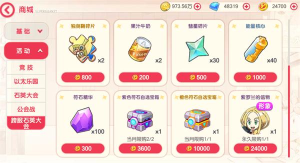 其他的材料,每周都要买一个紫色百变,主要是升级速度图鉴的精灵,上面有图自己对照下。这里的礼物跟彗星碎片也可以买,毕竟这个游戏的金币真的是太少了。