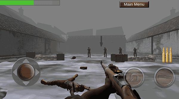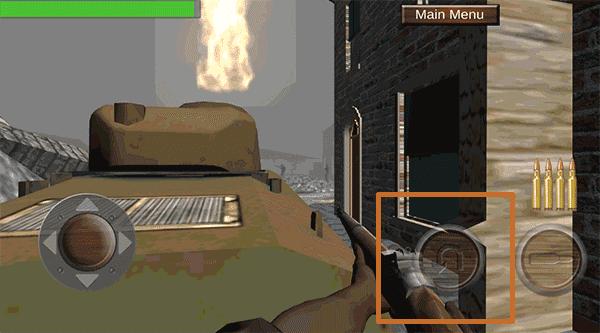首先进入游戏后,我们是随着一支小部队来到战场,随着馒头坦克被摧毁、队友的倒下,是时候展现我们自己的技术了,这里要注意的是游戏中子弹是不会自动上膛的,需要玩家自己上膛,点击红色方框内的按钮上膛;