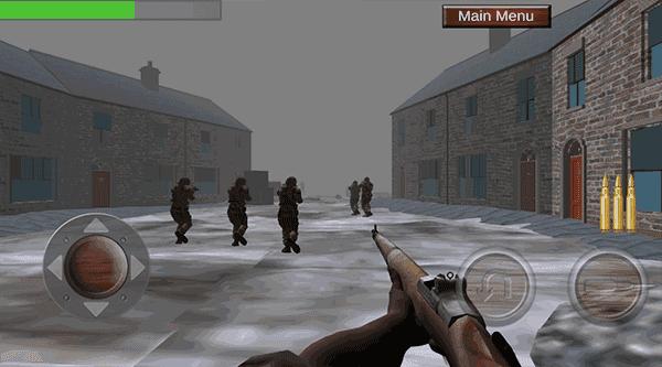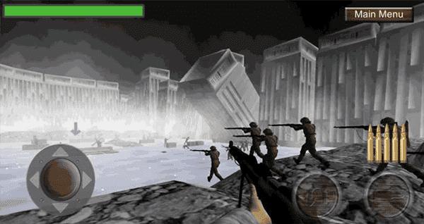 打完第一个场景后,往右走进入小巷子,打死2个敌人后会看到一架被击落的轰炸机,在它的右边是任务点,走到这里后,盟友又出现了,可惜敌人也出现了,继续消灭他们;