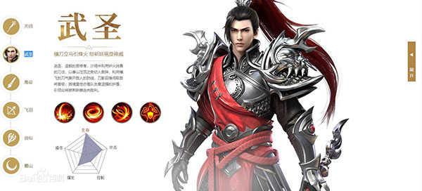 游戏四大职业中唯一的近战,武圣手持长刀,身披金甲,头盔上的红缨总在硝烟弥漫的战场上飘扬,用超高的血防为战友撑起坚实的守护屏障。