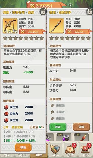 5、装备、武器的品质分为白色、绿色、蓝色、紫色、橙色、红色,越是高级的装备的品质越高,提升玩家们的战力越是高。玩家们可以通过攻打副本来获取到更加高品质的装备。装备也可以分解获得到工匠之石,也是非常有用的。