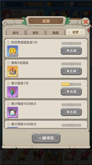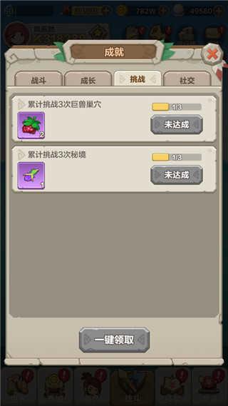 勇者在原始大陆冒险的时候达成一定阶段即可领取成就任务,获取丰厚奖励。