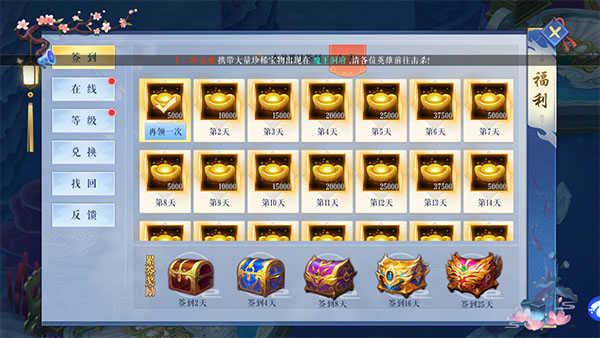 4、签到可获得大量元宝