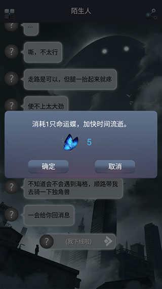 3、会有一条陌生人的新消息,对话中选择你想选择的回答,进行回复。