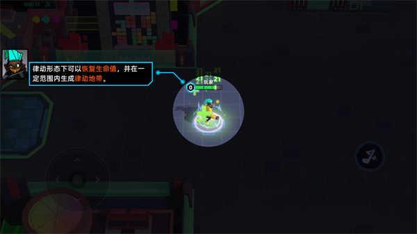 3、在律动形态下可以恢复生命值,并在一定范围内生成律动地带;